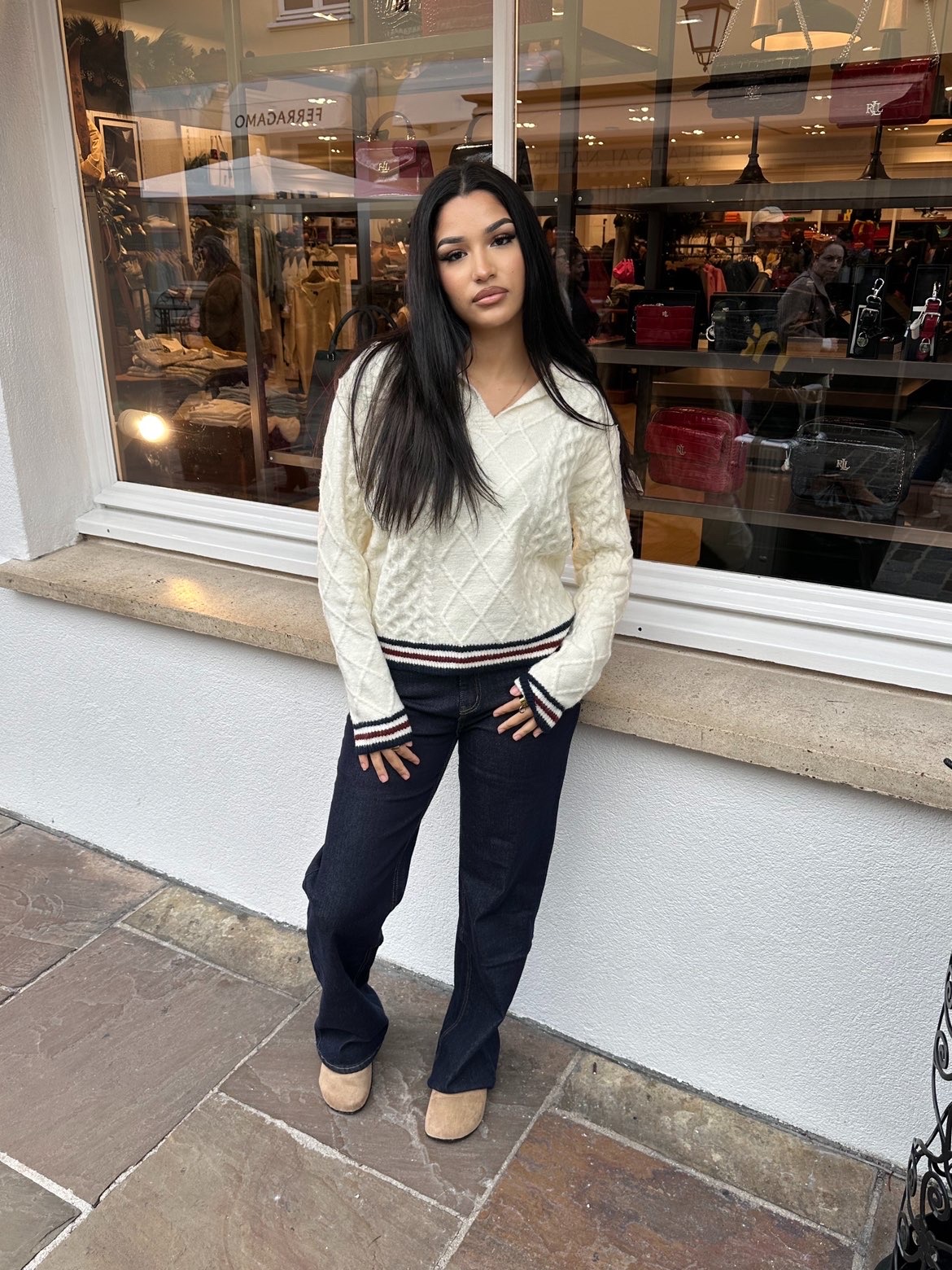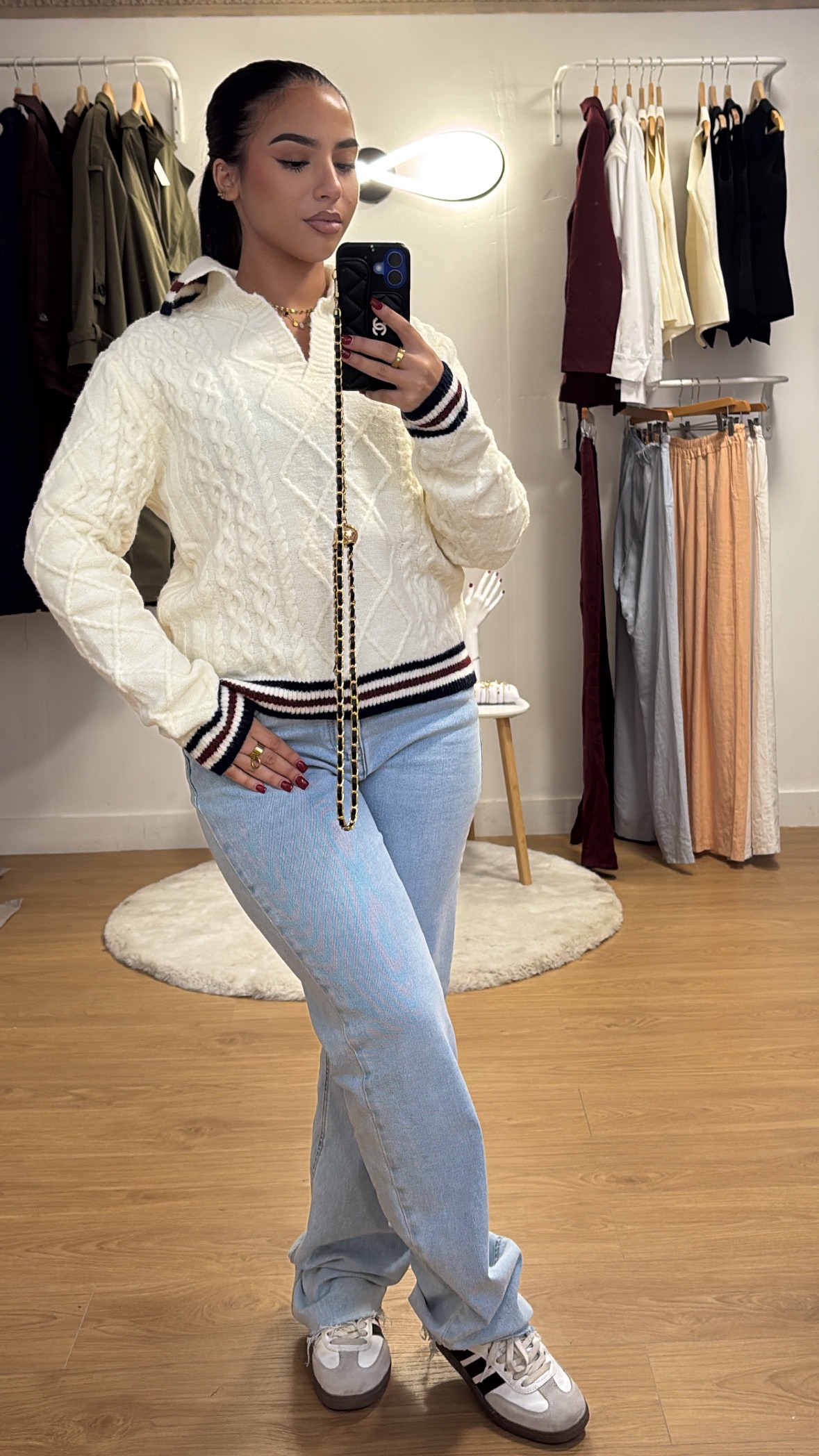 Avec ses rayures contrastées et sa maille torsadée ultra douce, il apporte une touche chic et cosy à toutes tes tenues.