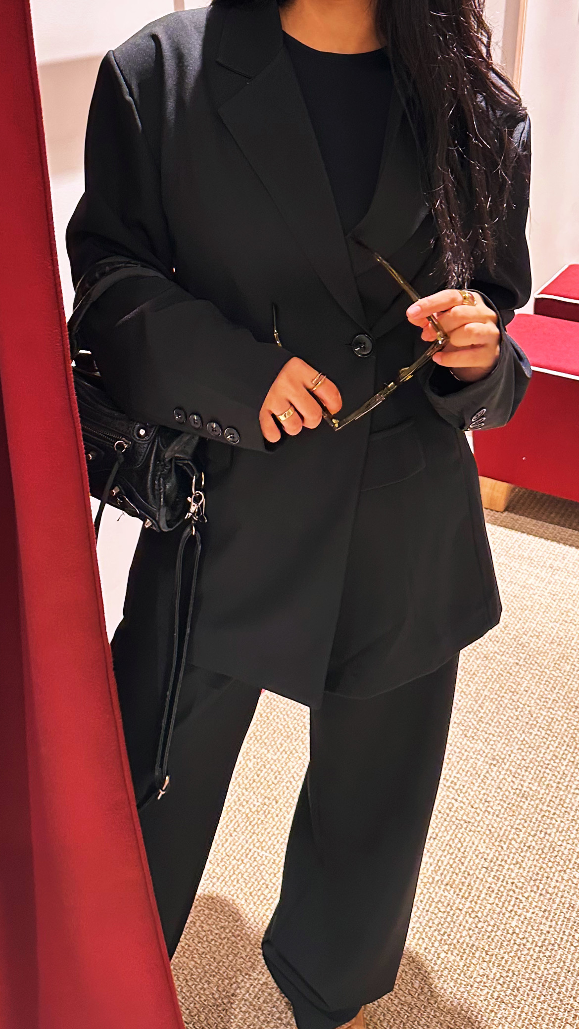 Son blazer à double boutonnage avant et arrière permet de le porter selon ton style : en version oversize pour un look décontracté, ou cintré pour une allure plus élégante et affirmée.