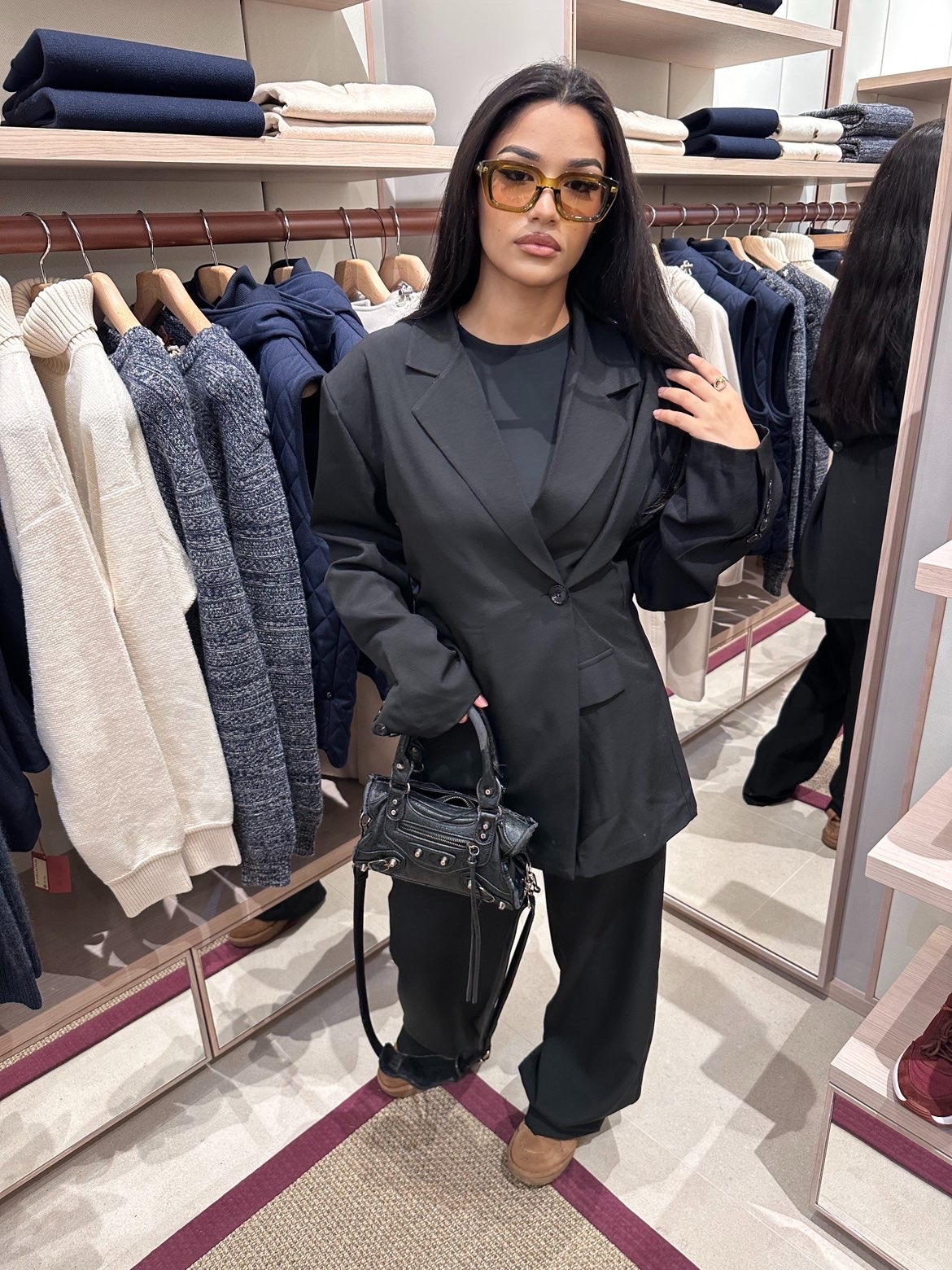 Associé à son pantalon fluide, il crée une silhouette raffinée et moderne, idéale pour un look bossy chic de jour comme de nuit.