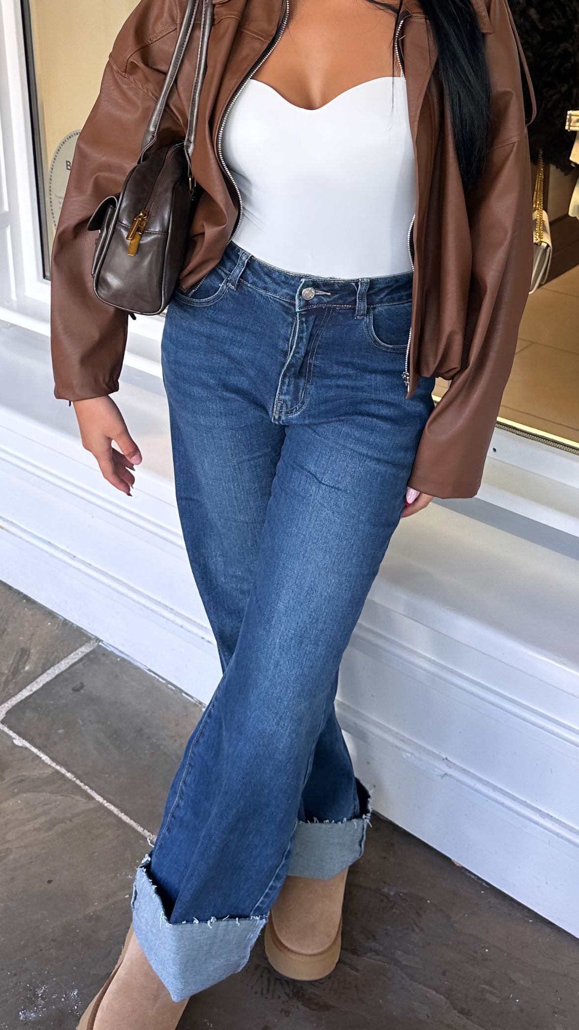 Détail qu’on adore : le revers effiloché qui structure la silhouette et allonge la jambe.